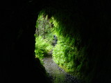 both sides of the tunnel behind the falls